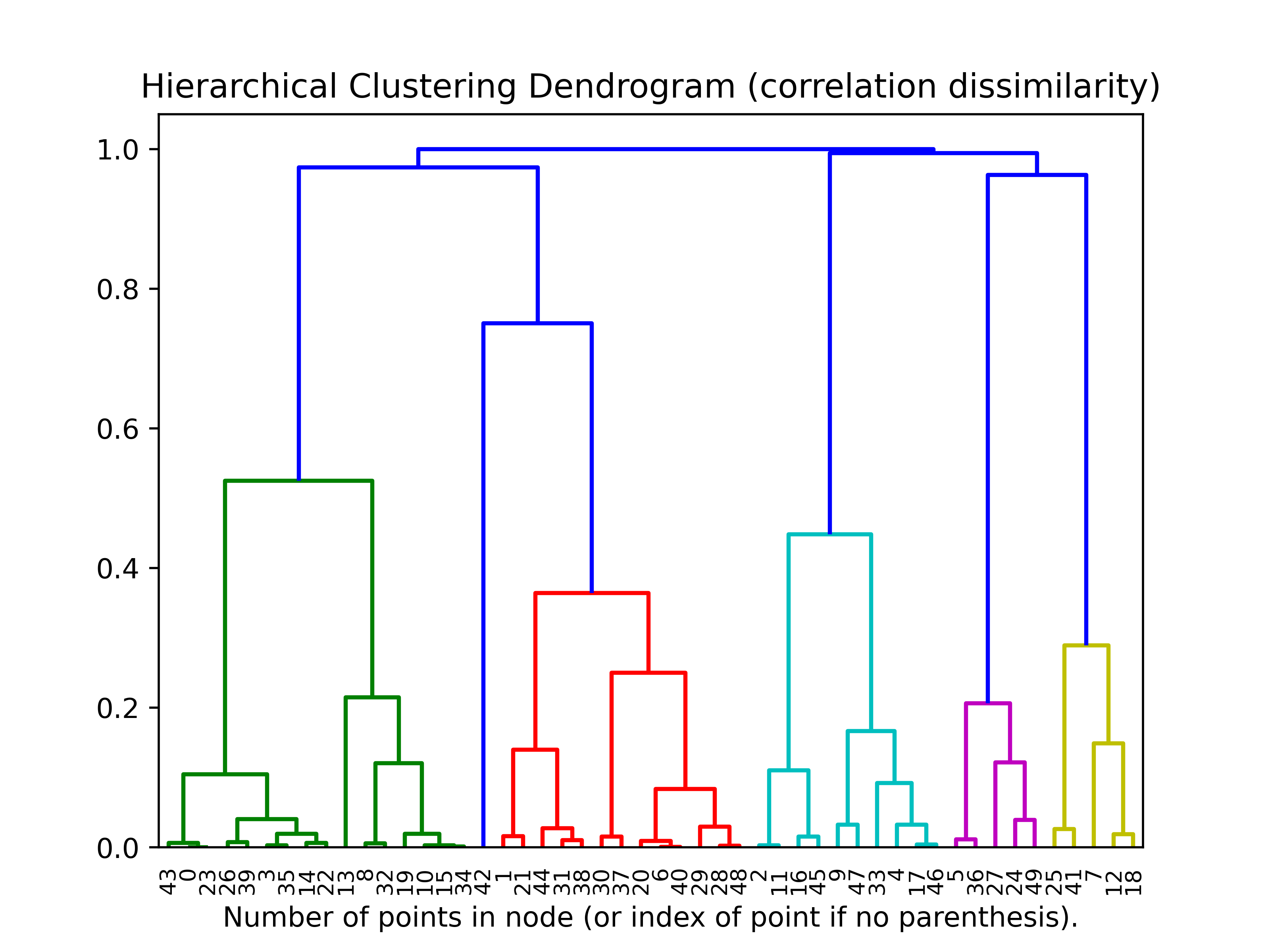 ## Fit the clustered to the pre computed distance matrix (correlation dissimilarity)